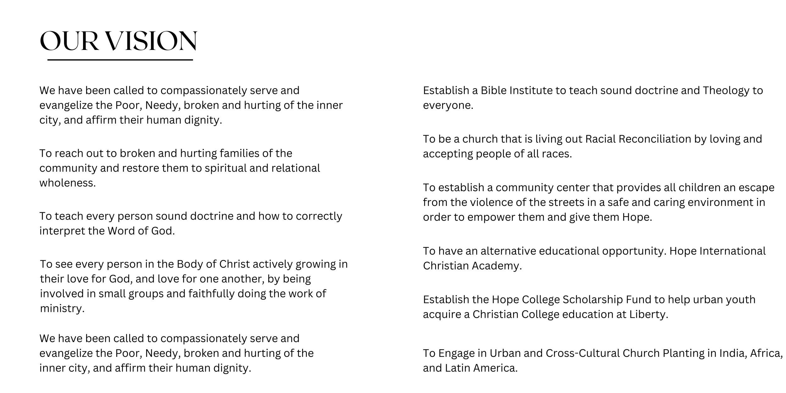 New Hope is a Church that cares for the poor, needy, and the broken families of the community and the family of God.